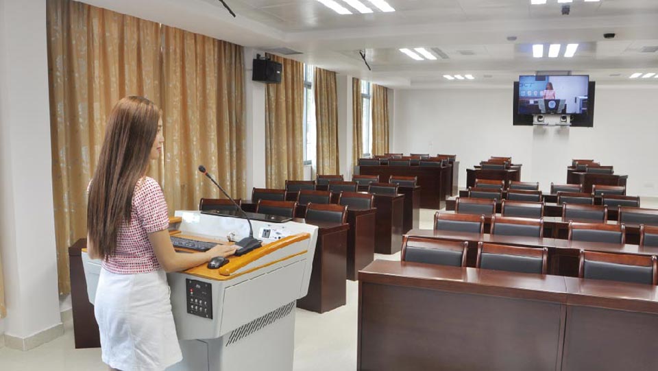 為了滿(mǎn)足教師專(zhuān)業(yè)發(fā)展的基本技能、教學(xué)能力、教育能力、教研能力與創(chuàng)新發(fā)展能力五個(gè)層級(jí)遞進(jìn)的能力需求,奧威亞為肇慶學(xué) 院定制了14類(lèi)特色功能室,包括:遠(yuǎn)程交互室、教師口語(yǔ)技能實(shí)訓(xùn)室、數(shù)碼音樂(lè)教育實(shí)訓(xùn)室、教師形象設(shè)計(jì)室(金太陽(yáng)音樂(lè)坊)、創(chuàng) 意教學(xué)研討室、墨香書(shū)畫(huà)坊、板書(shū)設(shè)計(jì)與簡(jiǎn)筆畫(huà)實(shí)訓(xùn)室、微課錄播室、微課制作室、教育信息設(shè)備實(shí)訓(xùn)室、VR仿真實(shí)訓(xùn)室、教師工作 室、教學(xué)設(shè)計(jì)實(shí)訓(xùn)室、教師教學(xué)研討室。 部分特色功能室展示,如下: