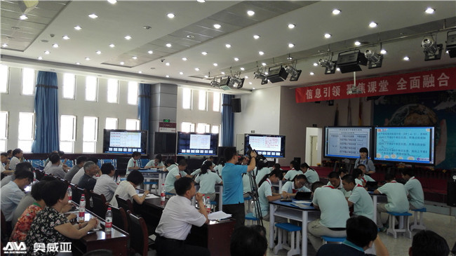 今日,在2016年新疆生產(chǎn)建設(shè)兵團(tuán)教育信息化應(yīng)用現(xiàn)場(chǎng)會(huì)上,科技司王延覺司長(zhǎng)、兵團(tuán)盧曉峰常委帶領(lǐng)全疆14個(gè)師局教育局局長(zhǎng)及電教館館長(zhǎng)參觀學(xué)習(xí),一起考察觀摩新疆生產(chǎn)建設(shè)兵團(tuán)第三中學(xué)的“未來教室”應(yīng)用情況。作為新疆教育信息化的重點(diǎn)工程,兵團(tuán)三中攜手國(guó)內(nèi)知名錄播企業(yè)奧威亞共同打造未來課室,為新疆接下來的教育信息化部署做出了新的嘗試!