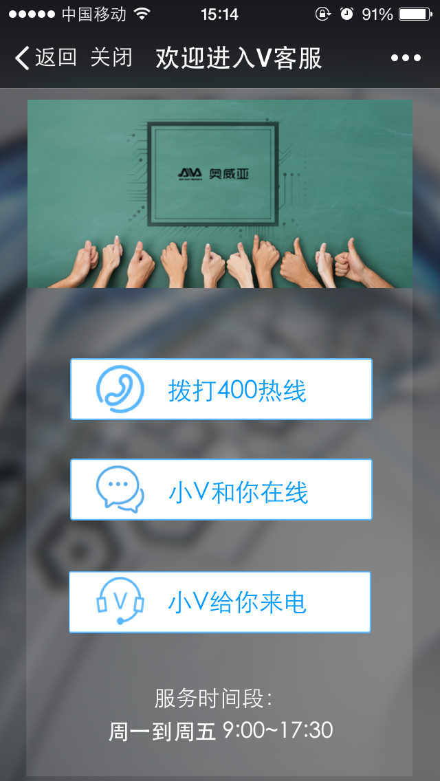 從9月1日起,奧威亞V客服貼心上線,并為您提供三種咨詢方式: