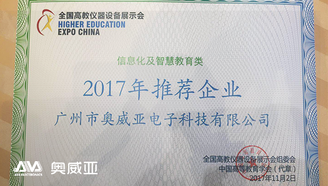 在不久前舉辦的第50屆全國高教儀器設備展示會上,奧威亞將又一行業(yè)大獎收入囊中!奧威亞榮獲由組委會、中國高等教育學會聯(lián)合頒發(fā)的信息化及智慧教育類“2017年推薦企業(yè)”。此次評選活動,在參展的649家企業(yè)中僅有50家獲評入選,奧威亞有幸位列其中,且是國內唯一一家入選的錄播企業(yè)。